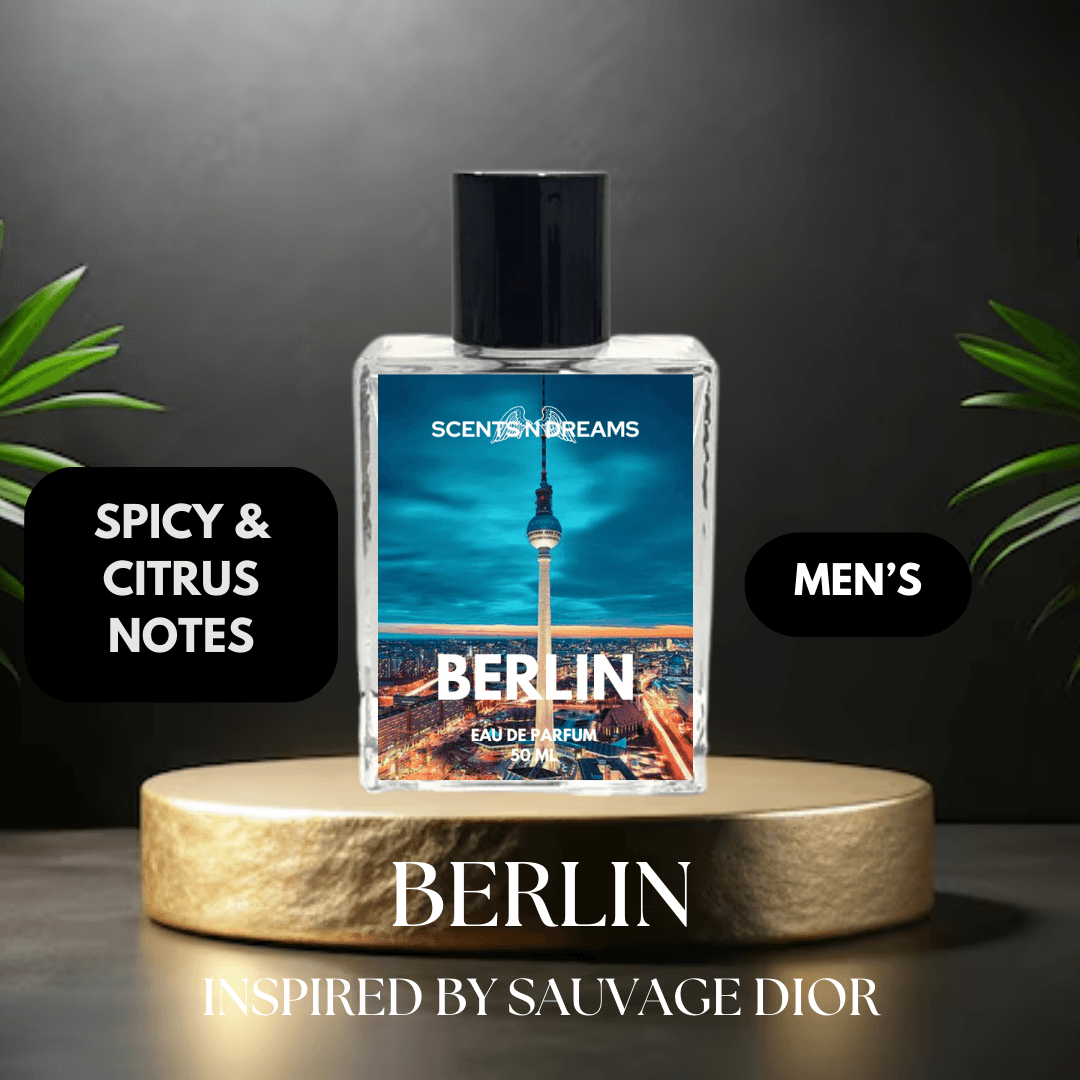 Berlin is a bold and fresh fragrance inspired by the iconic Sauvage Dior. With vibrant notes of citrus and spice, this scent captures the energy and spirit of a city that never sleeps. It's a perfect blend of rugged masculinity and modern sophistication, designed for those who are confident, adventurous, and ready to stand out.